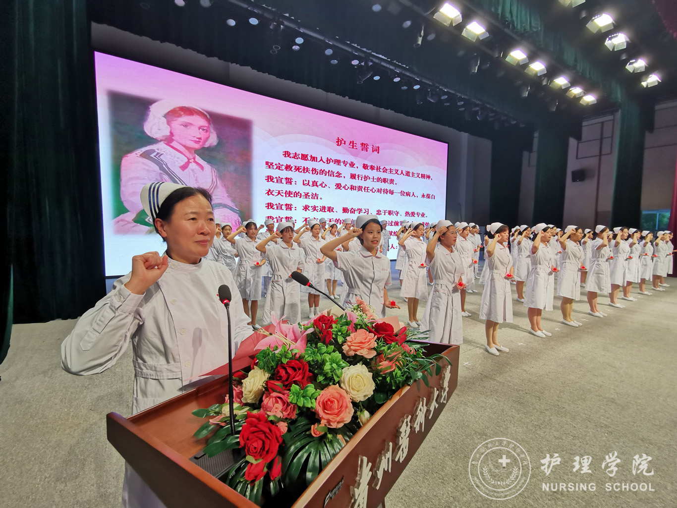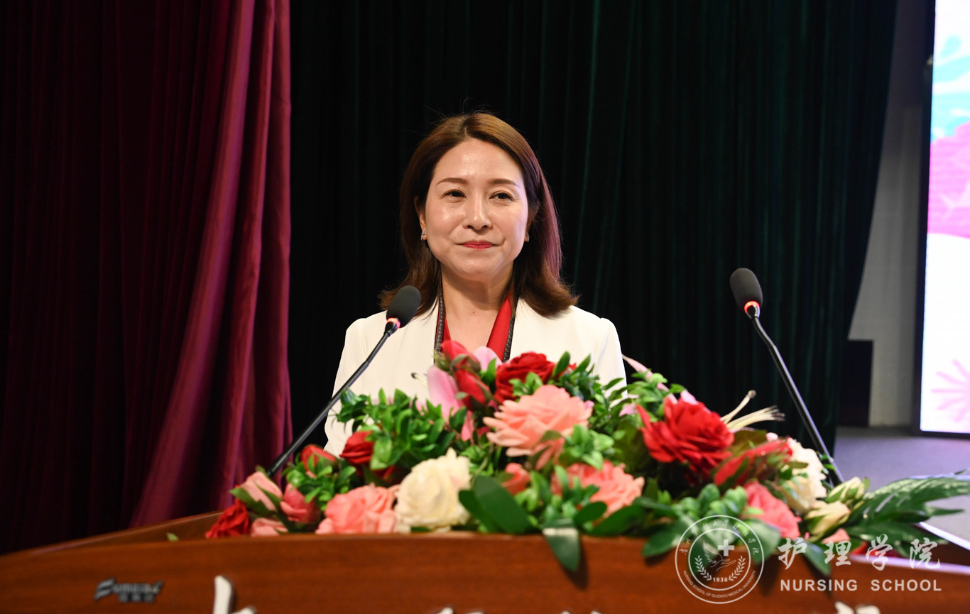 汤磊为本次活动致辞。他对学院一直以来的工作给予了肯定,向同学们提了三点要求:一是要用习近平新时代中国特色社会主义思想凝心铸魂,坚定理想信念,磨练意志品质,做新时代护理学事业发展知而行之的行动者;二是要向现代护理学事业伟大先驱南丁格尔学习,甘于奉献、救死扶伤,做新时代护理学事业发展坚而守之的继承者;三是不忘学医初心,牢记健康使命,恪守校训、秉承贵医精神,做新时代护理学事业发展奋而起之的奋斗者。