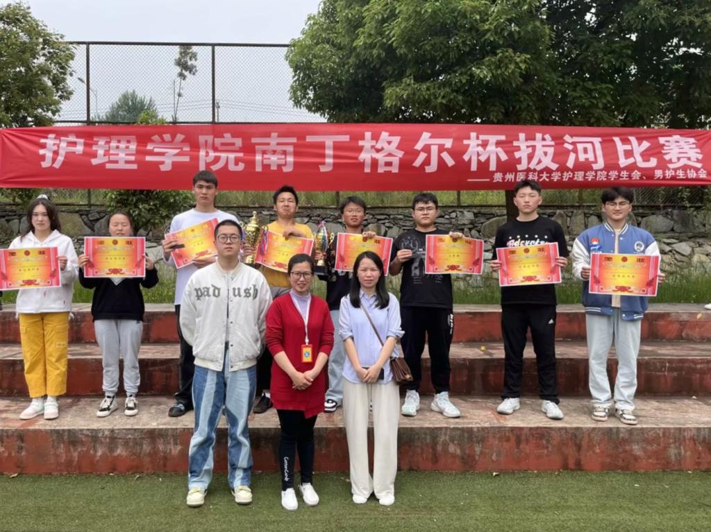 拔河比赛以班级为单位,采取小组赛和淘汰赛结合的形式进行。各班同学精神饱满、团结一致,心往一处想、劲往一处使,为班级荣誉共同拼搏,赛出了水平,赛出了风格,充分展现了护院学子敢打敢拼的青春力量。经过激烈的角逐,护理学2022级1班、护理学2021级5班、护理学2021级1班荣获本次比赛的前三名。最后,由毕丽、兰光倩、梁子豪分别为获奖班级颁发奖状并合影留念。