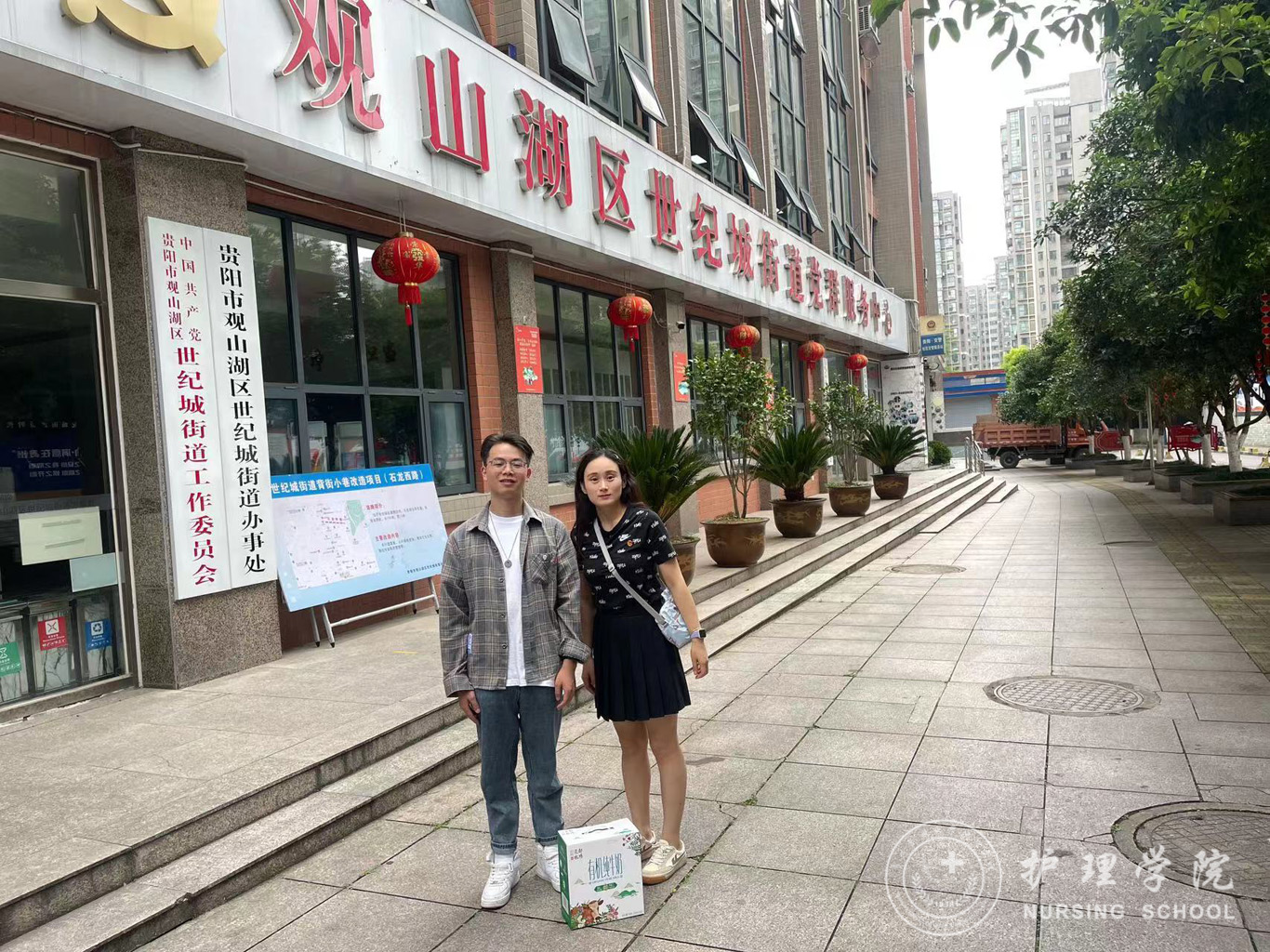 为组织大学生走进社会基层,增强时代责任,护理学2022级5班团支部在院团委副书记王晓玲老师的带领下,于6月11日前往贵阳市世纪城街道龙泽苑社区团支部开展了大学生社区实践志愿服务。本次活动由护理学2022级5班团支部书记朱月成和2022届毕业生、西部计划志愿者杨胜礼学长共同组织。
