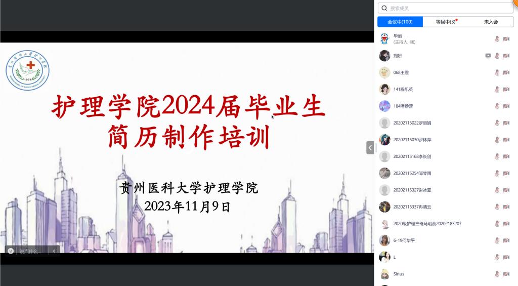 11月9日,为帮助学生尽快认清就业形势,提升毕业生求职能力,营造良好的就业氛围,永利集团304官方入口开展了2024届毕业生简历制作培训会,会议由毕业班辅导员刘妍主讲,学生科副科长毕丽主持,全体2024届毕业生通过腾讯会议线上参与培训。