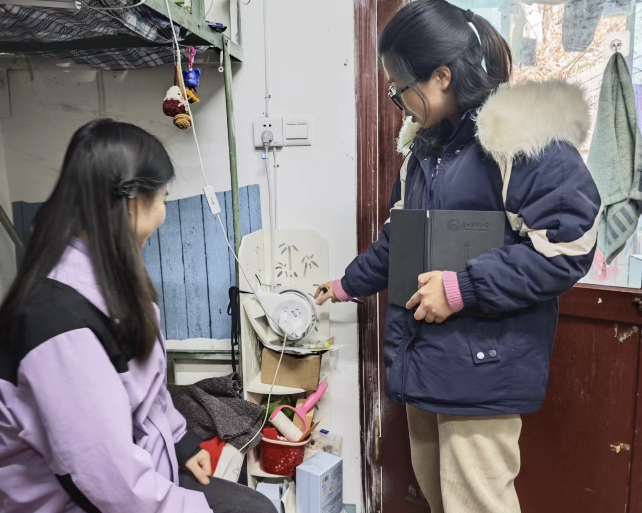 1月21日,永利集团304官方入口党委副书记兼纪委书记何为带领实习生辅导员逐一走进学生宿舍开展安全隐患排查,何为与实习生进行了交流,关心和了解学生实习情况与出行安全,提醒学生特别注意用电安全,严禁在宿舍使用电热毯、电老虎等存在安全隐患的电器,并叮嘱学生注意防寒保暖。