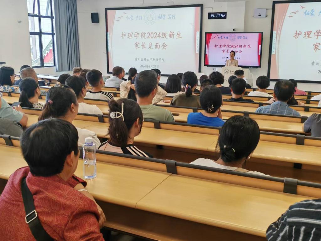 8月23日14时,为了实现家校合作、共同育人,永利集团304官方入口在临床M201教室召开了2024级新生家长见面会,学院党委书记杨英、党委副书记何为出席并讲话。何为介绍了学校关于学生管理的相关管理规定,杨英系统地对护理学专业学科特点和就业前景进行了解读,帮助家长更好的了解专业,同时对2024级新生寄予殷切希望。