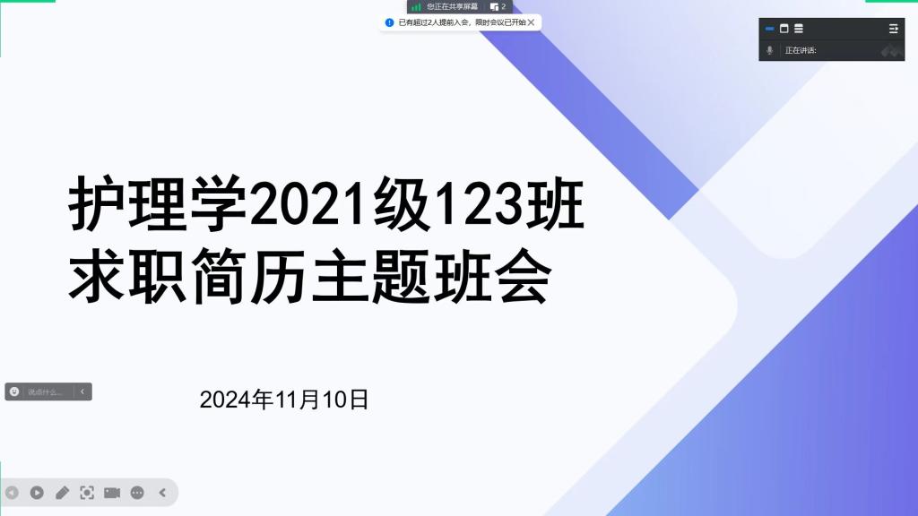 11月10日,为进一步提升同学们的就业能力,引导同学们提前了解社会对人才培养的需求,永利集团304官方入口开展了2025届本科毕业生求职简历制作指导主题班会,班会由本科毕业班辅导员兰光倩、刘文壮主持,此次班会通过腾讯会议的方式进行。