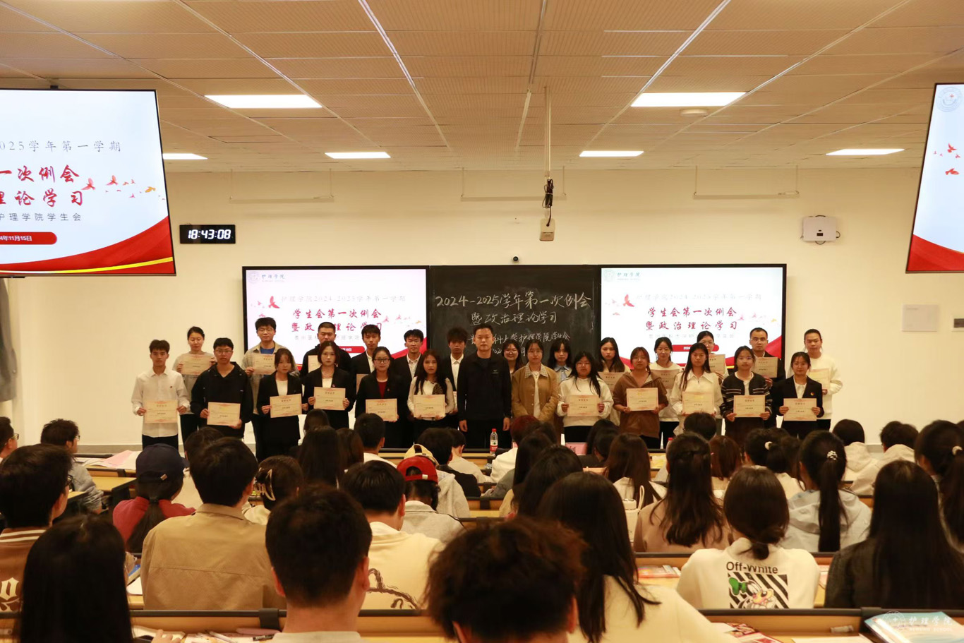 会议伊始,学生会文体部杨飘雪同学带领参会人员学习党的二十届三中全会精神。随后,学生会轮值主席何姝宣布今年新加入学生会的工作人员名单,学生会各部门负责人针对本学期工作的部门职责、工作内容以及存在的不足进行汇报,并提出了相应的解决方案以及未来发展计划。会议中,永利集团304官方入口四名优秀学生干部就如何在学生工作中成长、如何平衡工作与学习的时间等内容进行了经验分享。