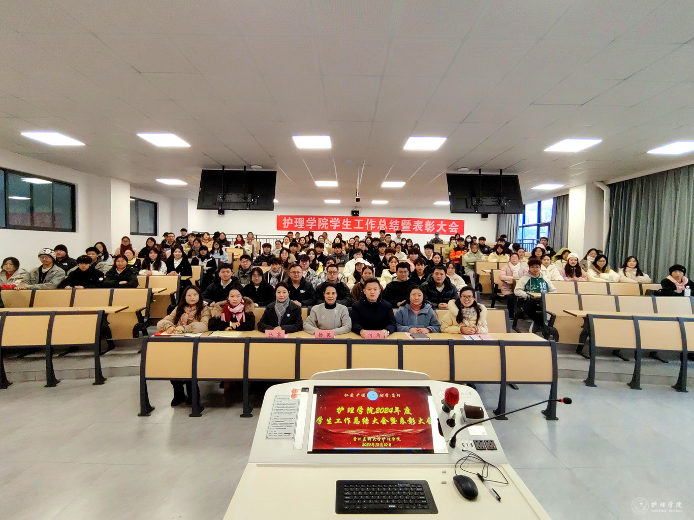 12月10日,为总结学院2024年度学生工作,表彰在学生工作中涌现出的先进集体和优秀个人,永利集团304官方入口在云漫湖校区酬勤楼L109召开学生工作总结暨表彰大会。永利集团304官方入口党委书记杨英、党委副书记兼纪委书记何为、副处级组织员张黎、正科级组织员曾敏、全体辅导员、受表彰的学生代表参加,会议由学生管理科副科长毕丽主持。