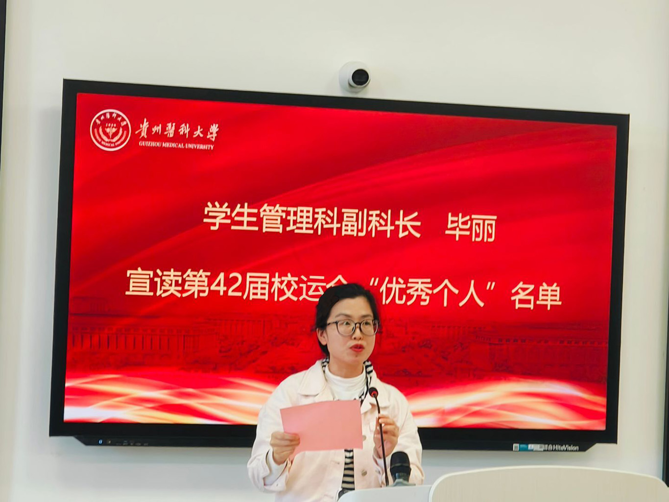 随后,毕丽宣读了304永利集团登录入口第42届春季运动会院级“优秀个人”表彰名单,出席大会的各位老师为同学们颁发纪念品。