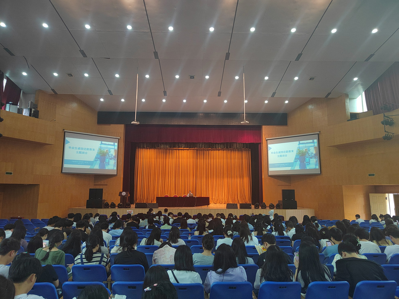 5月19日,为营造文明和谐、生动活泼、平安有序的毕业生离校氛围,永利集团304官方入口在北京路校区礼堂召开了2025届毕业生文明离校暨诚信还款教育主题班会。永利集团304官方入口党委副书记兼纪委书记何为、毕业班辅导员兰光倩以及2025届本科毕业生参加此次会议。会议由毕业班辅导员刘文壮主持。