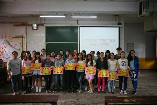 永利集团304官方入口2015届毕业实习总结表彰大会于2015年4月17日下午2点半在北京路校区普2教室举行,参加会议的有永利集团304官方入口副院长刘志燕、学生科科长曾敏、办公室副主任张常喜、年级辅导员、2015届毕业实习学生。会议由生产实习科科长柳忠燕主持。