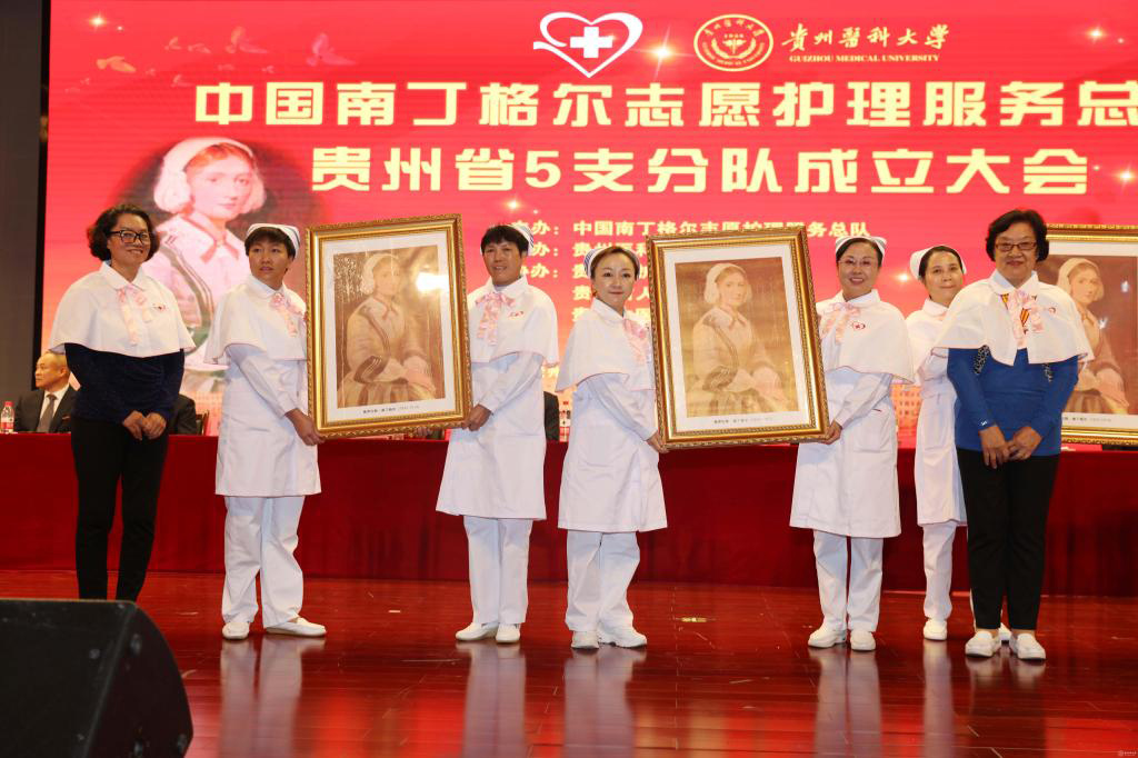 9月25日,中国南丁格尔志愿护理服务总队贵州省5支分队成立大会在304永利集团登录入口召开,第43届南丁格尔奖章获得者、中国南丁格尔志愿护理服务总队理事长张利岩,第39届南丁格尔奖章获得者、中国南丁格尔志愿护理服务总队副理事长陈东,中国南丁格尔志愿护理服务总队副理事长姜景惠,贵州省卫生健康委员会医政医管处处长陈莉,贵州省红十字会秘书长邓守权,第39届南丁格尔奖章获得者贵州护理前辈苏雅香,贵州省护理学会理事长江华容,304永利集团登录入口党委书记林昌虎,纪委书记王之瑞,附属医院党委书记刘文,副校长田晓滨出席,304永利集团登录入口副校长刘健担任主持。来自304永利集团登录入口及省内37家护理院校和医疗机构近1500名护理志愿者欢聚一堂,共同见证了中国南丁格尔志愿护理服务总队贵州省护理学会分队、304永利集团登录入口分队、贵州省人民医院分队、贵州中医药大学第二附属医院分队、贵州工商职业学院大健康学院护理学会分队5支分队的成立。