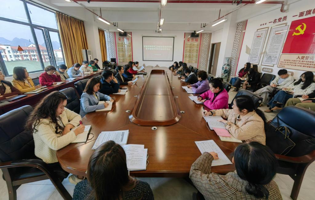 学院党委书记杨英作总结发言。她高度肯定了前期工作取得的成效,并对后续任务提出四点要求:一是提高政治站位,将评估工作作为学院发展的战略性任务全力推进;二是强化协同联动,形成“全员参与、上下贯通”的工作格局;三是坚定攻坚信心,以“迎评促建”为契机破解教学深层次难题;四是提升队伍效能,通过评估锤炼作风、凝聚合力,推动学院综合实力实现跨越式提升。