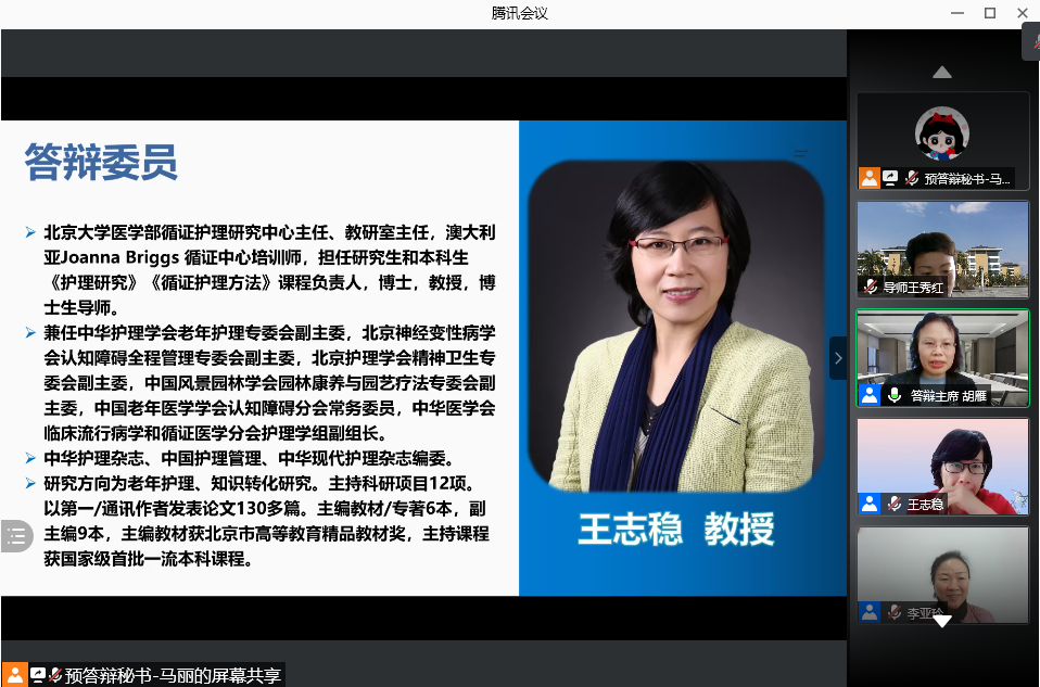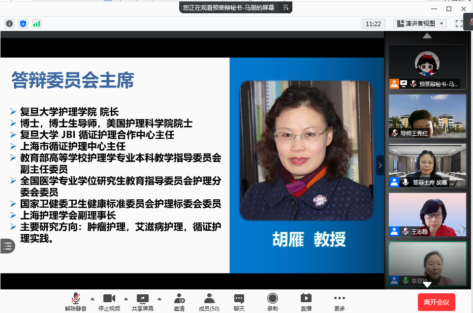 4月20日,永利集团304官方入口2021届硕士研究生学位论文预答辩通过腾讯会议在线进行。此次预答辩特别邀请复旦大学永利集团304官方入口院长、博士生导师胡雁教授任答辩委员会主席,北京大学永利集团304官方入口博士生导师王志稳教授、304永利集团登录入口附属医院陈腾祥教授、304永利集团登录入口附属医院老年医学科莫显刚主任医师以及304永利集团登录入口公共卫生学院汪俊华副教授担任答辩委员。永利集团304官方入口导师、副导师、专业教师、研究生等60余人参加本次会议,研究生院督导专家全程参与。