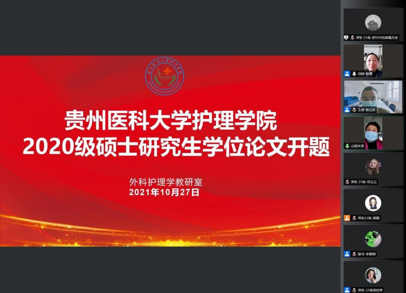 10月26日、27日、29日永利集团304官方入口2020级硕士研究生开题通过腾讯会议在线进行。此次开题分别邀请中南大学湘雅永利集团304官方入口郭佳教授、刘民辉副教授及贵州中医药大学陈云志教授任开题委员会主席;北京大学永利集团304官方入口王志稳教授、 中南大学湘雅三医院健康管理中心秦春香教授、中南大学湘雅永利集团304官方入口杨敏教授、孙枚副教授和王瑶副教授及《护士进修杂志》主编张秀主任、中山大学中山眼科中心肖惠明主任护师、华北理工大学护理与康复学院陈长香教授、广州市护理学会会长黄雪仪主任护师、贵州中医药大学永利集团304官方入口石国凤教授、304永利集团登录入口公共卫生学院流行病学与卫生统计学王子云副教授和汪俊华副教授等担任开题专家委员。永利集团304官方入口导师、副导师、专业教师、研究生等共计参会150人次,研究生院督导专家全程参与。