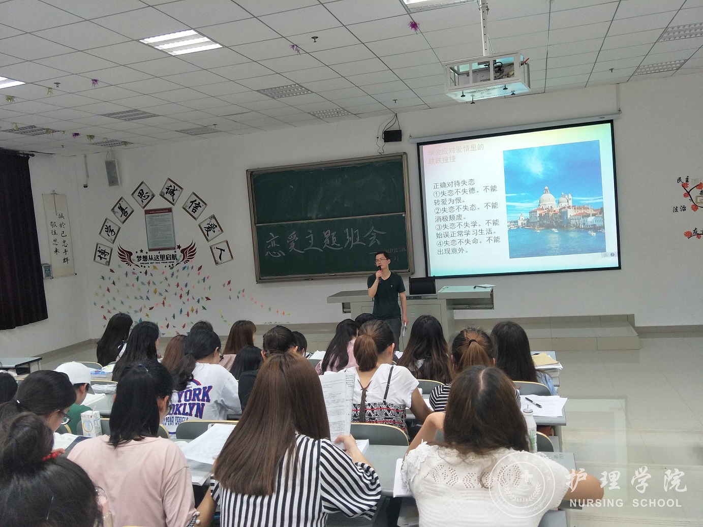 为了使同学们树立正确的恋爱观,6月21日晚,永利集团304官方入口在南校区7404、7406教室召开了大学生恋爱主题班会。2017级辅导员马景瑶老师,2017级护理学甲班、乙班全体同学参加了此次班会。
