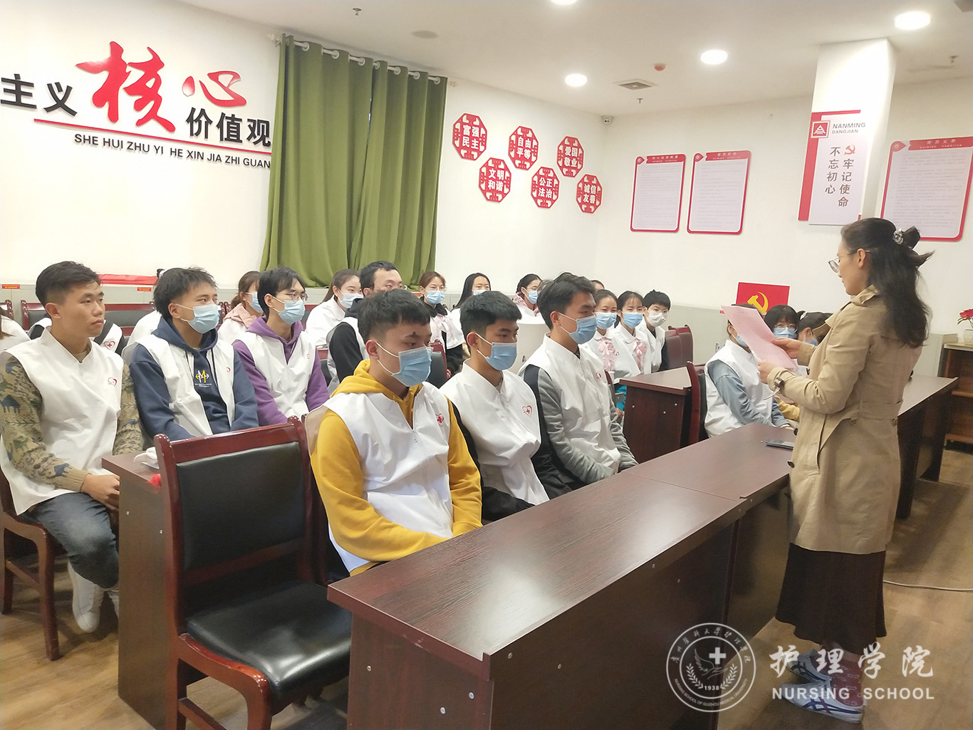 会议议程分五个部分进行。首先,由学生代表蓝阔耀发言,他说:作为一名志愿者,我们利用自己的周末时间、所学专业知识技能,在老师的指导下进行志愿服务工作,不仅使我们得到了成长,感受到肩负的责任感,也增强了我们对护理专业的自豪感,未来我们会更加努力学习,积极投身到志愿服务活动中,争取早日成长为专业的健康卫士。
