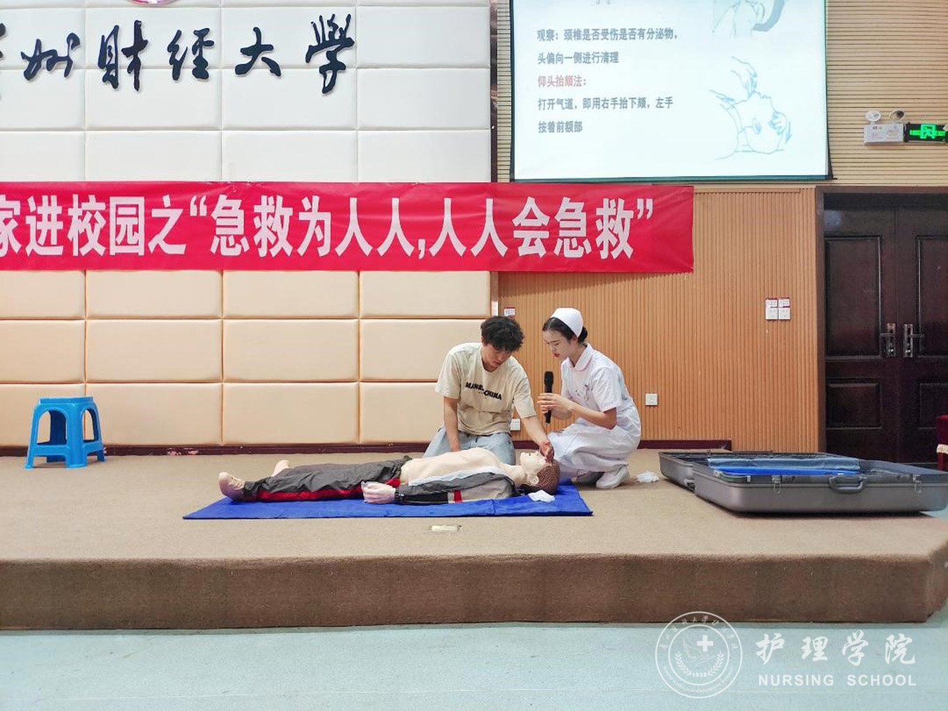 通过本次培训,进一步普及了紧急救护知识,提高了大学生互救、自救能力,同时也加强了学院与外校的交流联系。本次培训活动也是财经大学工商管理学院“四进校园——名师名家进校园”活动之一。