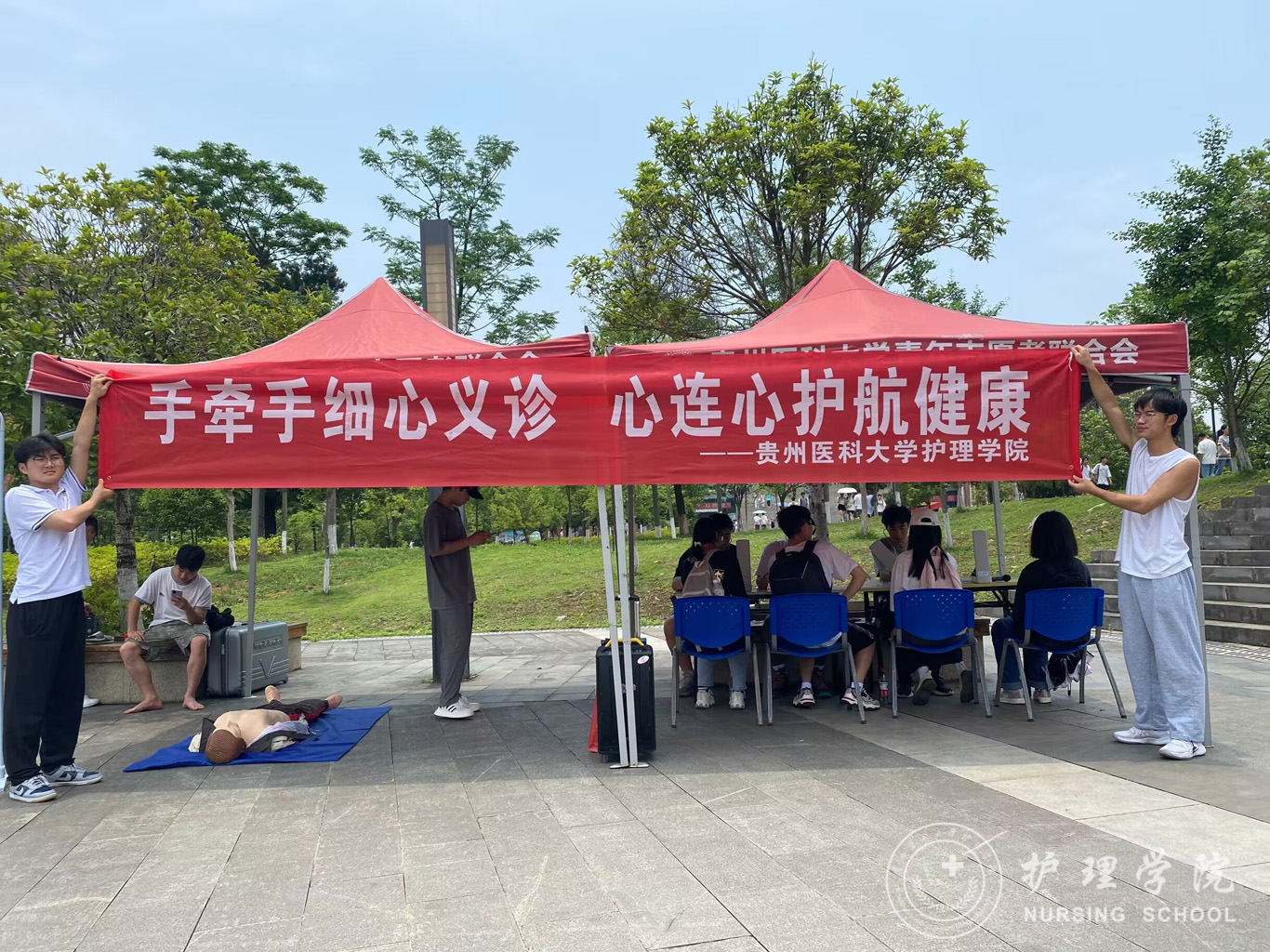 6月2日,为深入学习贯彻党的二十大精神,在学习贯彻习近平新时代中国特色社会主义思想主题教育中落实“健康中国”战略,加强在校大学生急救知识技能知识学习,提高自救互救能力,304永利集团登录入口男护生协会与永利集团304官方入口护理技能协会在南校区一食堂小广场联合举办了“手牵手细心义诊,心连心护航健康”急救知识技能培训活动,活动面向全校同学开展。