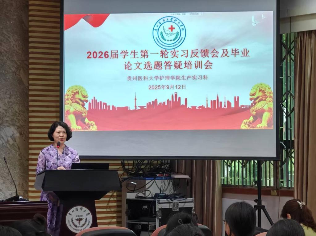 9月12日,永利集团304官方入口在北京路校区道德讲堂召开2026届毕业实习轮转反馈暨毕业论文(设计)选题培训会。永利集团304官方入口党委副书记何为、副院长刘志燕、附属医院门诊护士长王琼、郑静,生产实习科全体人员、2022级辅导员及全体2022级学生线下线上参加会议。会议由生产实习科科长柳忠燕主持。