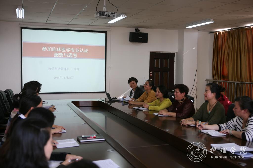 紧接着王秀红科长分享了她参加11月14日-17日我校临床医学专业认证工作的感想和思考。通过多天的跟随走访,了解到认证工作中专家的实地考察的内容和重点。观摩了校本部理论和实验教学课、附属医院的指导操作教学查房、病例讨论等教学活动。结合临床和护理专业认证标准,王秀红科长从宗旨与目标、教育计划、学生成绩评定等十个方面对跟随走访过程中的要素进行了全面分析,并结合即将进行的本科教学审核评估工作、护理专业认证工作提出永利集团304官方入口的整改建议和努力方向,进一步明确和强化了教学实施过程及相关管理要求,为真正落实“以评促建、以评促改、以评促管、评建结合、重在建设”核心方针,突出内涵建设、强化内部质量保障体系建设树立牢固基础。