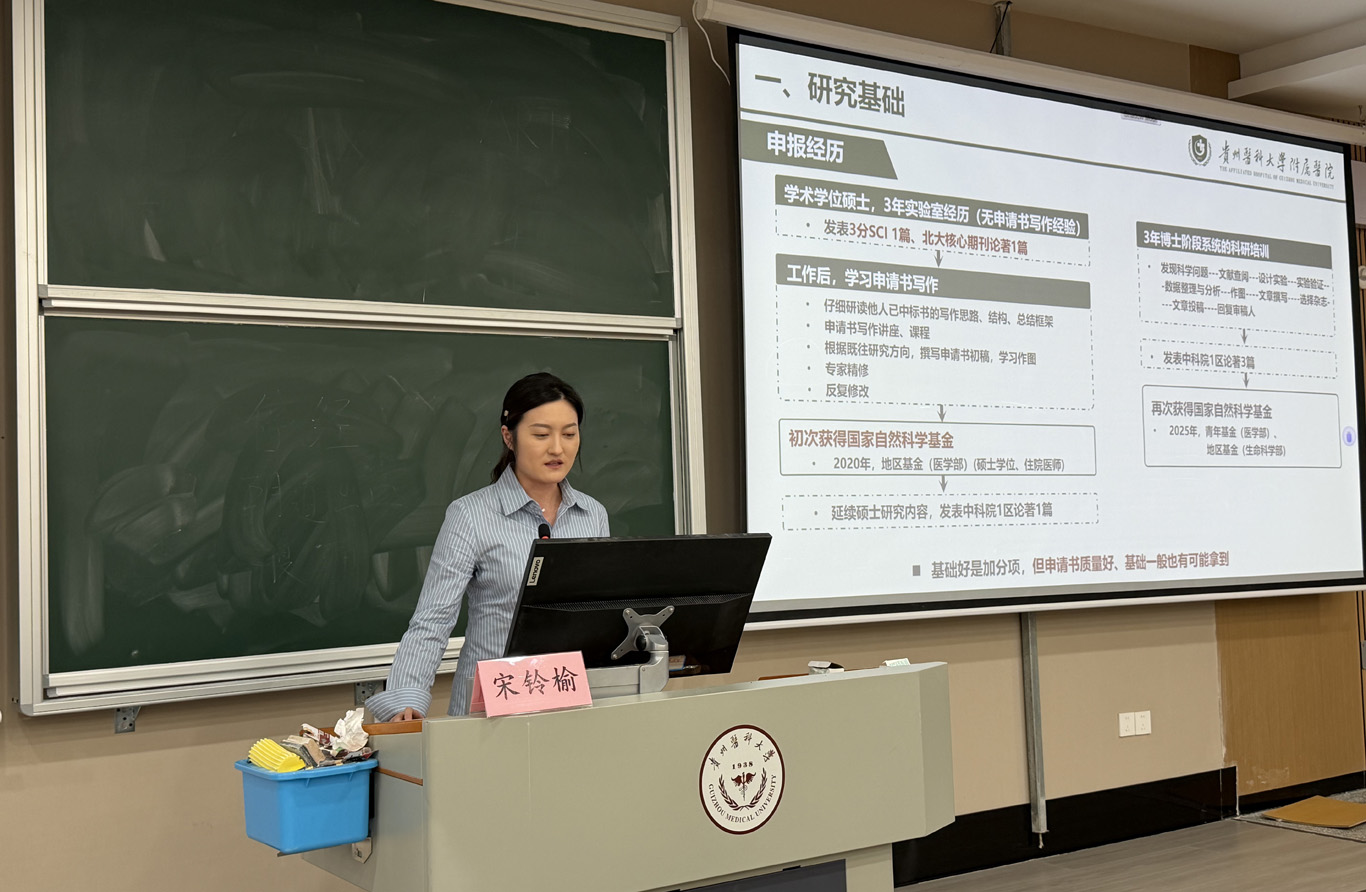 本次活动邀请到在2025年度国家自然科学基金项目申报中同时成功获批青年科学基金项目与地区科学基金项目两项资助的304永利集团登录入口附属医院消化内科宋铃榆博士担任主讲嘉宾。宋博士结合自身成功的申报实践,围绕国家自然科学基金的选题立意、立项依据撰写、研究方案设计、创新性与可行性凝练、前期研究基础积累以及申报书撰写细节与技巧等核心环节,进行了全面系统的解析。她的分享内容翔实、逻辑清晰、见解独到,极具实践指导价值。