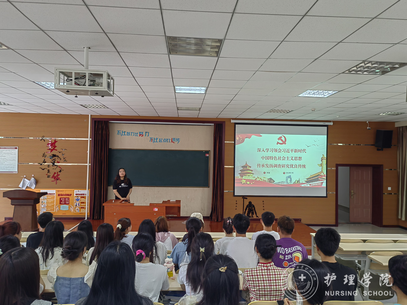 7月1日,为庆祝中国共产党成立102周年,深入学习贯彻党的二十大精神,推动学习贯彻习近平新时代中国特色社会主义思想主题教育走深走实,进一步激励全体党员的干事创业热情,提升党组织的凝聚力和战斗力,永利集团304官方入口学生第二党支部在南校区百川楼1101教室开展了“红心向党 初心不变”庆祝中国共产党成立102周年系列活动,活动由党支部书记刘文壮主持,支部全体党员参与本次活动,永利集团304官方入口党委委员、综合办公室副主任李颖出席活动。