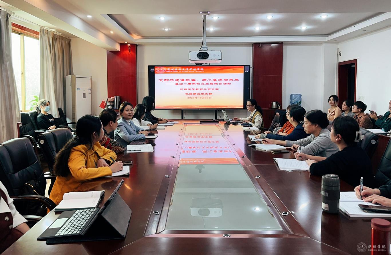 10月31日下午,永利集团304官方入口教职工党支部与附属医院机关第三党支部(护理部党支部)在北校区行政楼五楼党员活动室开展了“支部共建谱新篇,同心奋进向未来——喜迎85周年校庆”主题党日活动,活动由附属医院机关第三党支部书记、附属医院护理部副主任蔡鹏主持。永利集团304官方入口副处级组织员张黎、附属医院护理部副主任顾颖参加了此次活动。