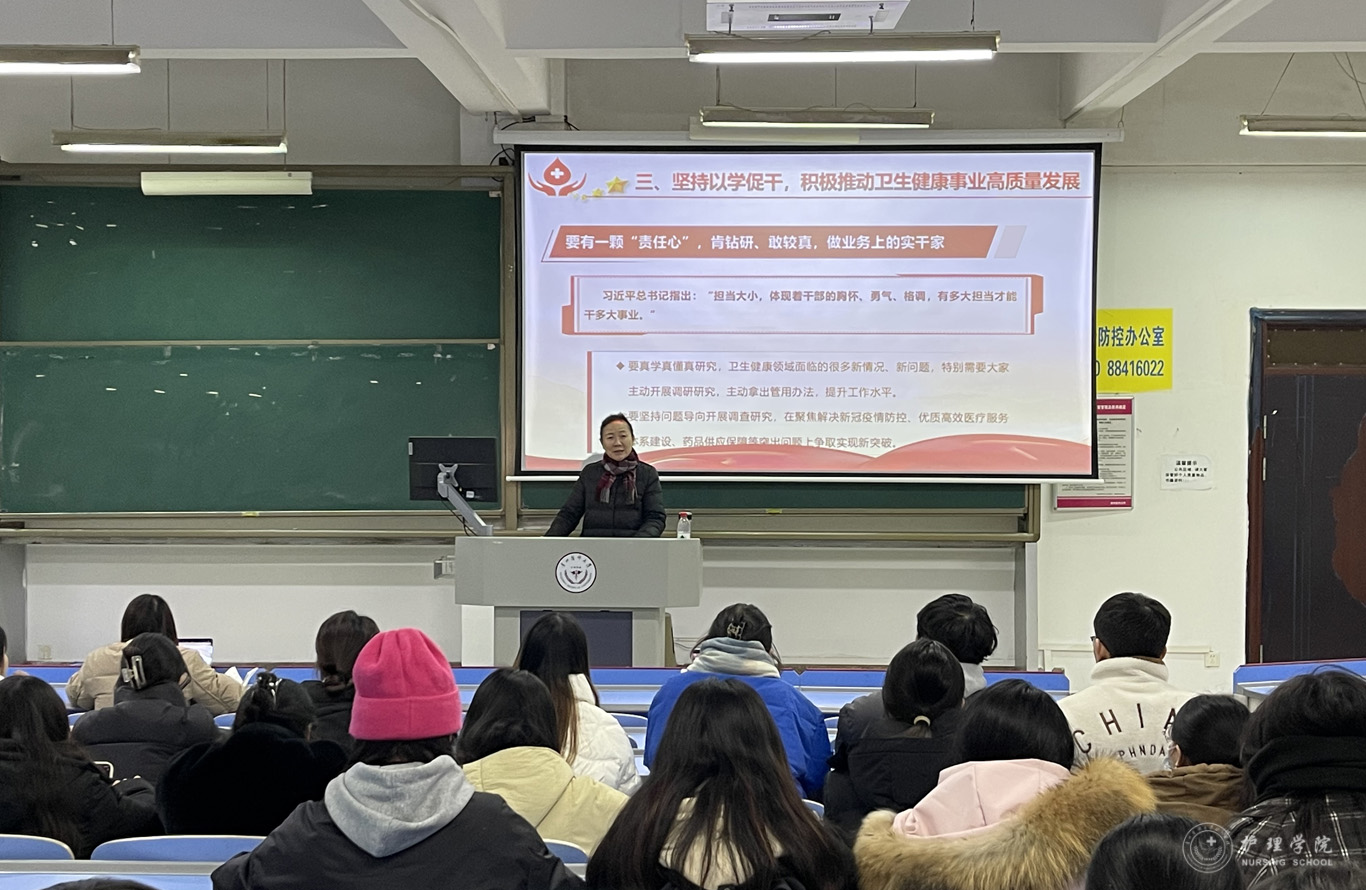 12月19日,为进一步引导支部党员牢记初心使命、坚定理想信念,大力弘扬伟大抗疫精神和崇高职业精神,做勇于担当、甘于奉献的大学生。永利集团304官方入口党委委员、院长李亚玲在学生第三党支部讲授了题为“感悟思想伟力,积极推动卫生健康事业高质量发展”的专题党课,会议由支部书记刘妍主持,支部全体党员参会。