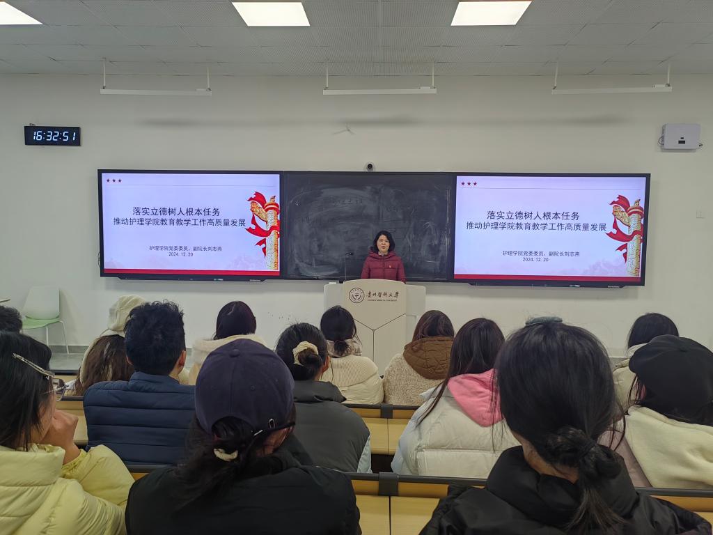12月20日,为深入学习贯彻党的二十届三中全会精神和全国教育大会精神,更好地培养德智体美劳全面发展的社会主义建设者和接班人,永利集团304官方入口党委委员、副院长刘志燕以《落实立德树人根本任务 推动永利集团304官方入口教育教学工作高质量发展》为题在云漫湖校区临床组团R209教室为永利集团304官方入口学生第二党支部全体党员讲授了深刻而生动的专题党课。