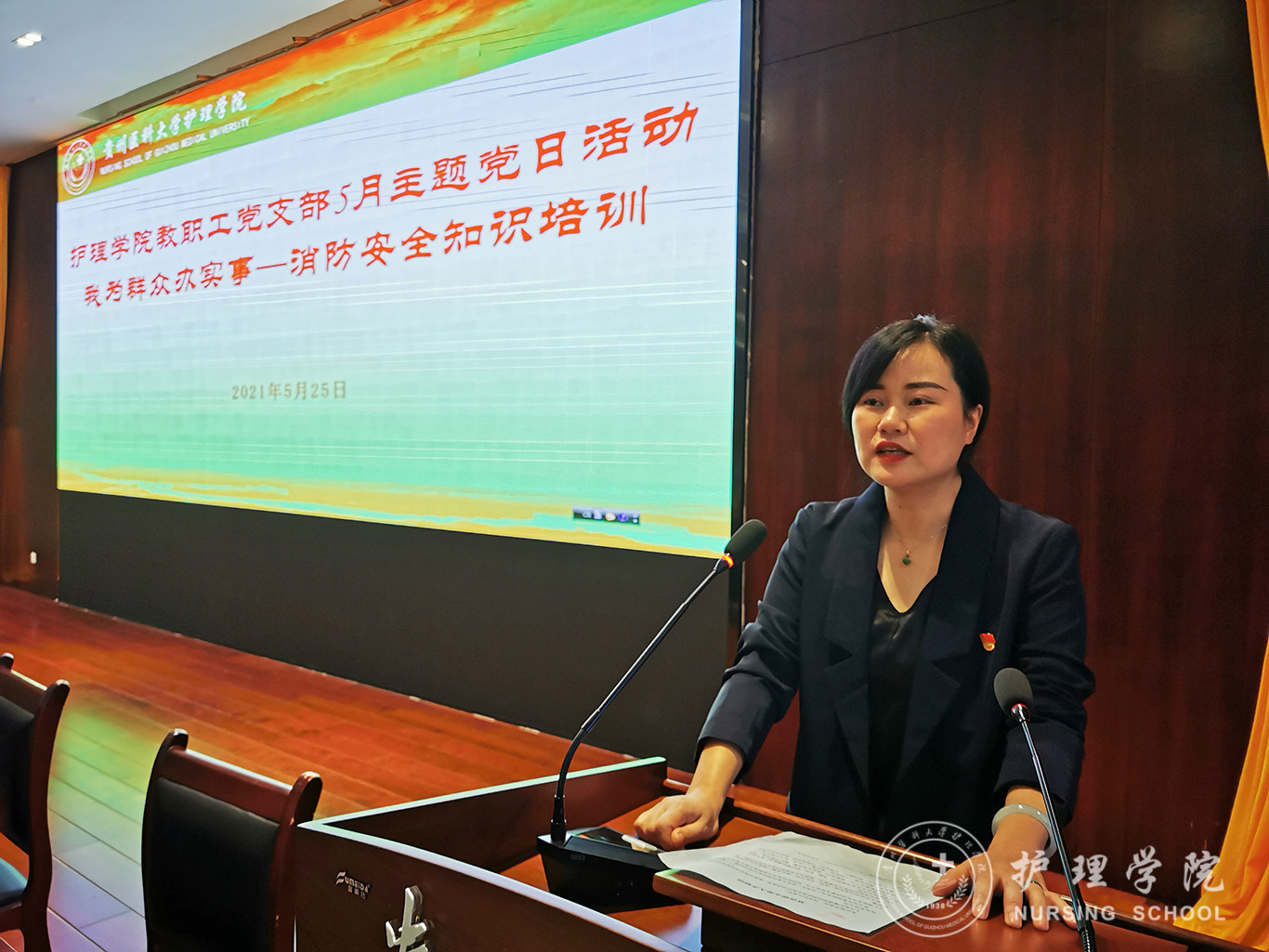 为深入开展党史学习教育,切实将学习教育成果转化为为群众办实事的实际行动。5月25日,永利集团304官方入口教职工党支部开展“我为群众办实事——消防安全知识培训”主题党日活动。本次活动由教职工党支部书记张仁莉同志主持,教职工党员及学生代表一百七十余人到场参加。