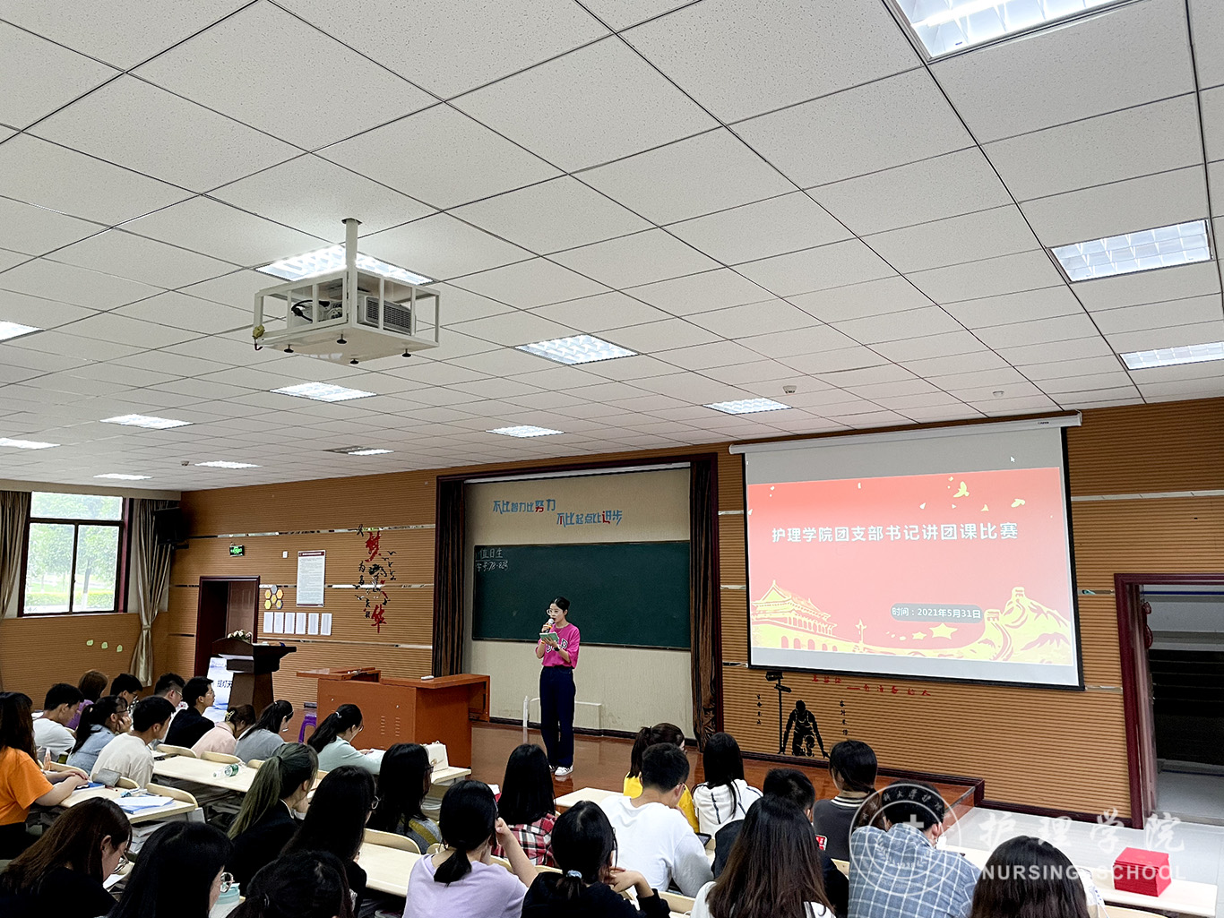 5月31日,为了引领团员青年把个人理想融入时代主题、汇入复兴伟业,坚定不移听党话、跟党走,争做学校高质量发展的主力军,勇做担当民族复兴大任的时代新人,以优异成绩向建党一百周年献礼,永利集团304官方入口于百川楼1101教室举行了“学党史,强信念,跟党走”团支部书记讲团课比赛,出席此次活动的有学生科副科长毕丽老师、团委副书记王晓玲老师、学生第三党支部书记刘妍老师、各学生组织代表和参加比赛的17位团支部书记,2019级护理学丙班团支书陈悦同学主持了本次比赛。