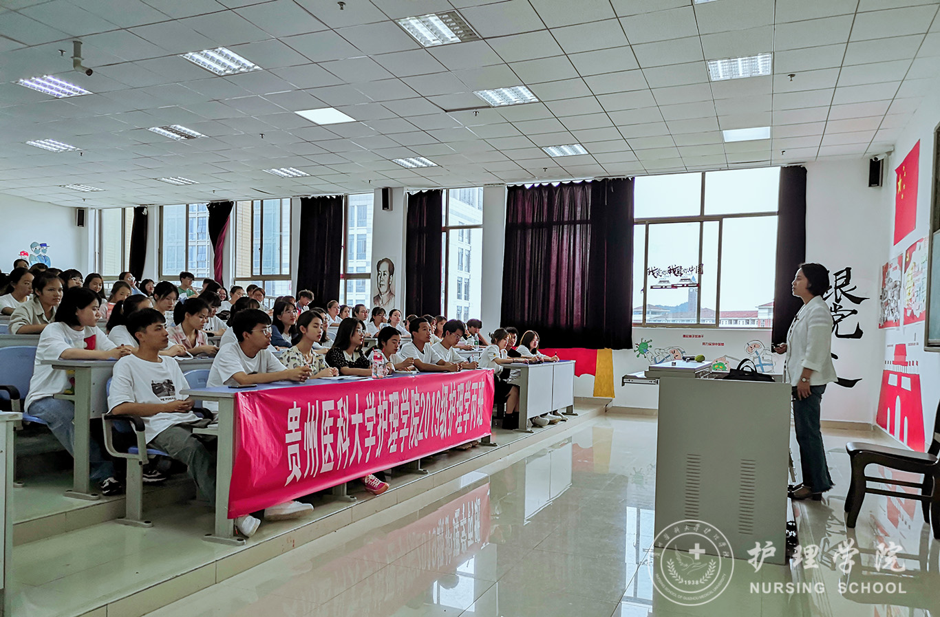 6月30日,为庆祝中国共产党建党100周年,深入学习中国共产党百年奋斗史,切实推进党史学习教育深入开展。永利集团304官方入口党委书记杨英在南校区广德楼X1504教室为永利集团304官方入口2019级护理学丙班开展党史学习教育宣讲,全体同学参加。