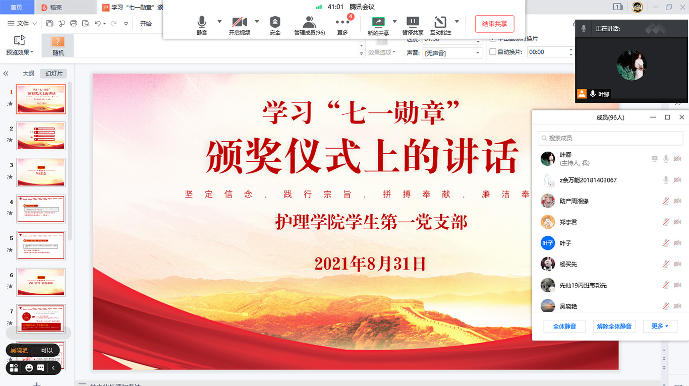 8月31日,为进一步弘扬功勋模范精神,引导广大学生党员学习先进典型“坚定信念、践行宗旨、拼搏奉献、廉洁奉公”的高尚品质和崇高精神。永利集团304官方入口学生第一党支部开展学习“七一勋章”颁奖仪式重要讲话精神。会议由永利集团304官方入口学生第一党支部书记杨叶卿主持,全体学生党员及入党积极分子通过线上形式参加会议。