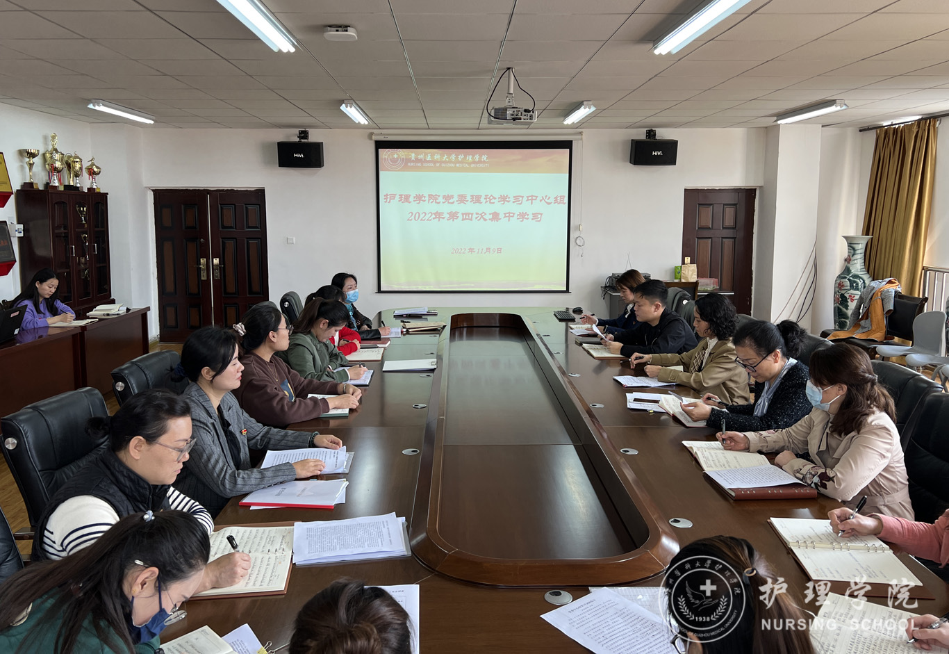 11月9日,永利集团304官方入口在南校区百川楼五楼会议室开展专题学习研讨党的二十大精神暨党委理论学习中心组第四次集中学习,院领导班子成员、副科级以上干部、党支部书记和全体辅导员参加,会议由学院党委书记杨英主持。