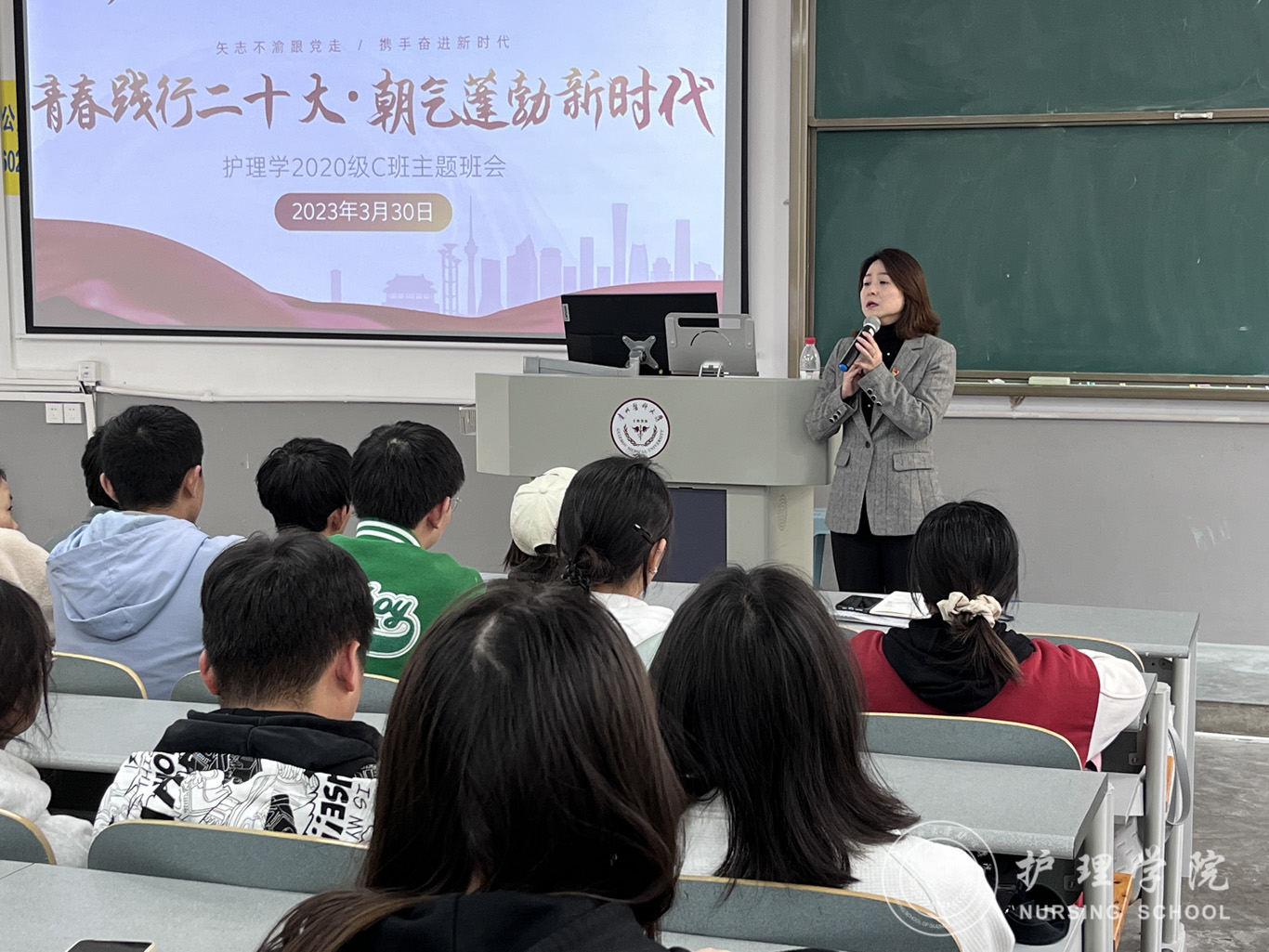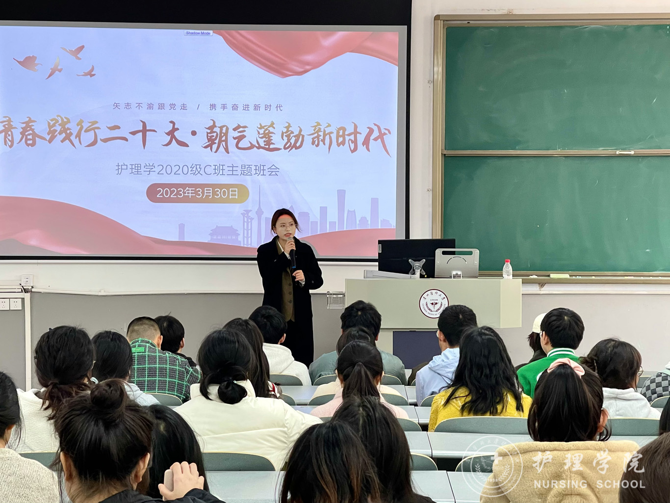 3月30日,为深入学习宣传贯彻党的二十大精神,强化思想引领,聚焦立德树人根本任务。永利集团304官方入口党委委员、副处级组织员张黎到护理学2020级C班开展了“青春践行二十大,朝气蓬勃新时代”主题班会活动,会议由辅导员刘妍主持,班级全体同学参与。