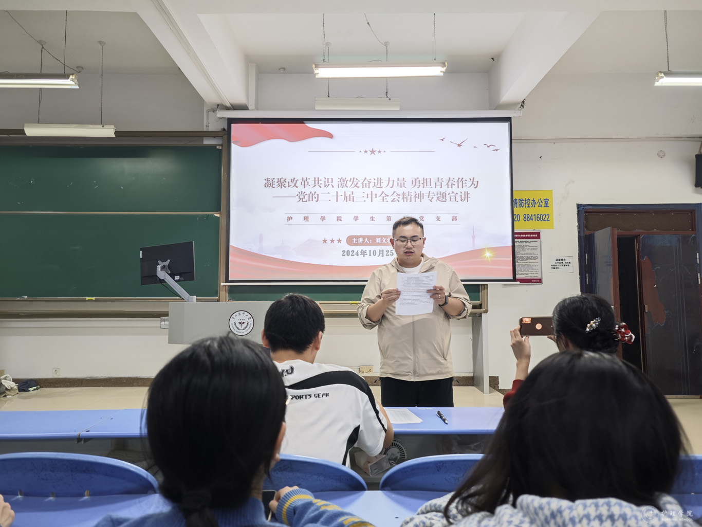 各党支部书记主要围绕“深刻认识进一步全面深化改革的重要意义、准确把握进一步全面深化改革的丰富内涵、以深化改革推动高校党建工作高质量发展”等方面,分别以《从黑神话·悟空的爆火中领悟三中全会精神》《凝聚改革共识激发奋进力量勇担青春作为》等主题,深入解读了全会精神的丰富内涵和实践要求,引领全体师生党员自觉将全会精神融于心、铸于魂、践于行。